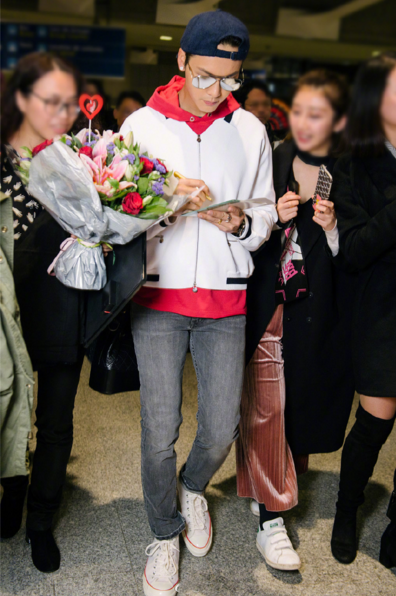 陈伟霆白色卫衣装,虽然没有校服的模样,但也很有校园风的休闲。