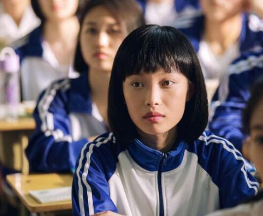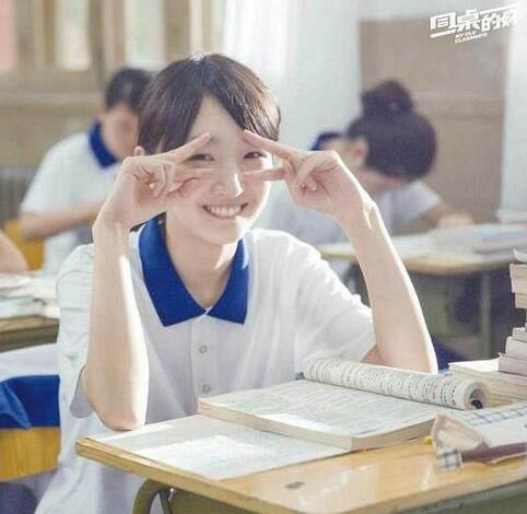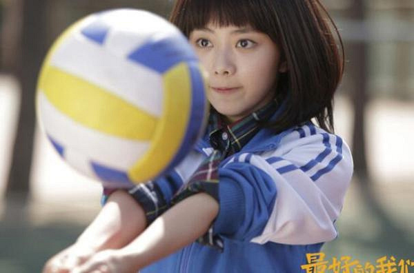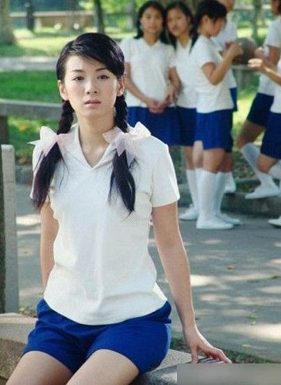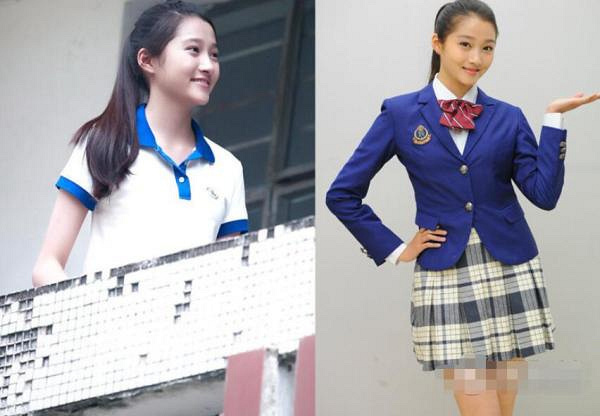 陈都灵的确长相清纯,最适合这样干净清爽的校服装了。