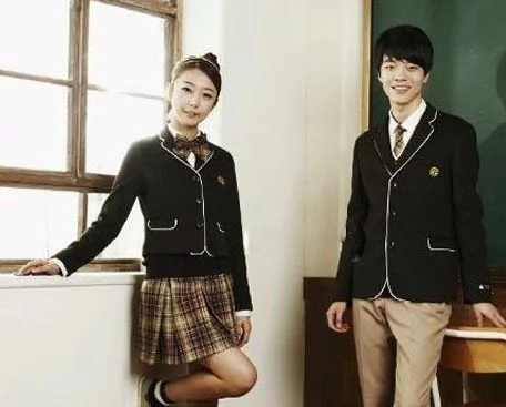 四、最时尚的韩国校服: 不得不说,韩国这个盛产偶像剧的国家,从小就开始培养这种穿衣搭配风格。男生大多是白衬衫配西装裤,女生通常是白衬衫加花格子百褶裙。