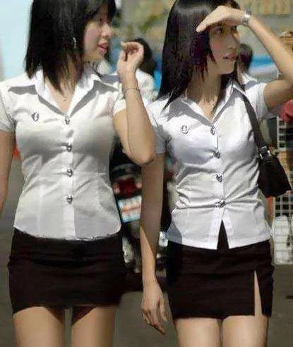 二、最性感的泰国校服: 泰国学生从小学到大学在校都必须穿校服。其中,女学生的新款校服将白衬衫改为紧身短袖式样,其紧身程度可以将身体曲线表露无遗。