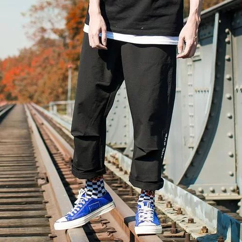 这款复古风的阔脚裤,可以搭配各种帆布鞋、慢跑鞋都非常帅气。裤脚和腰围处都采用了可调节的绑带设计,使得裤子更合身,上身更好看。