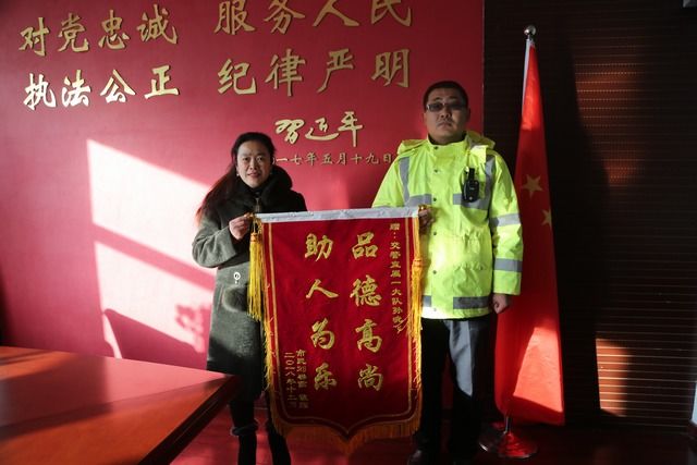 12月24号一大早,德州交警直属一大队就迎来了一位刘女士,将一面写有“品德高尚,助人为乐”的锦旗送到一位公益性岗位人员手中,以感谢其及时发现并寻找学生归还书包的热心行为。