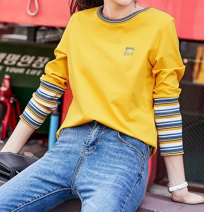 黄色的内搭,衬托出了自己的肤色白皙,整个人都很是显嫩,将大气时尚的效果都完全展现,搭配牛仔裤的设计,更是将长腿都完全展现,勾勒出了满满的时尚感,质感曼妙清新。
