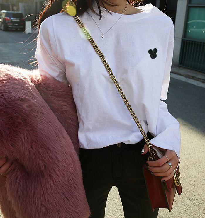 白色的内搭,可以说是非常经典而且百搭的款式了,搭配黑色的裤子,更是不错的色调组合,上面的设计,不会显得枯燥和单调,增添了灵动清新的洒脱韵味,很是俏皮。