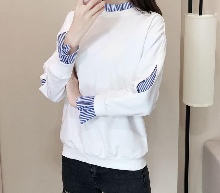 蓝白色相间的内搭,更是增添了自己洒脱利落的效果,上面的色调相间,显瘦的感觉更是瞬间展现,将自己修长的手臂都展现,搭配黑色的紧身裤,将一双长腿都完全展现,很是清新和简练和大气利落了。