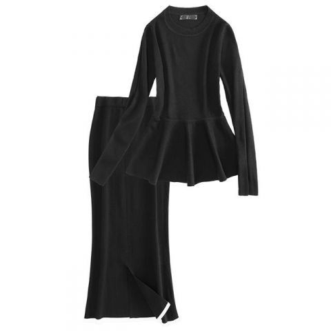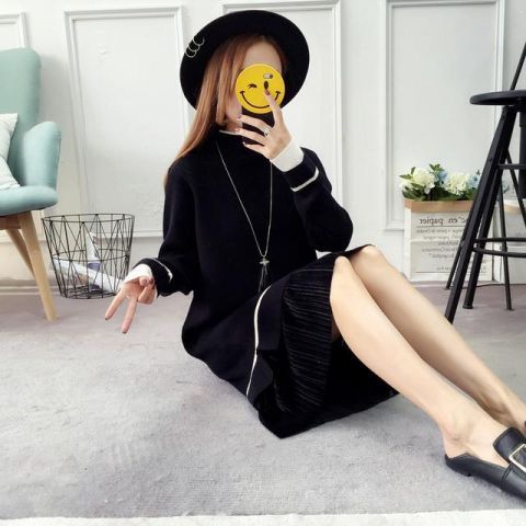 针织连衣裙毛衣配裙子两件套装过膝打底长裙,展现出十足的魅力,在精美面料的衬托之下,优雅气质,清新气质。