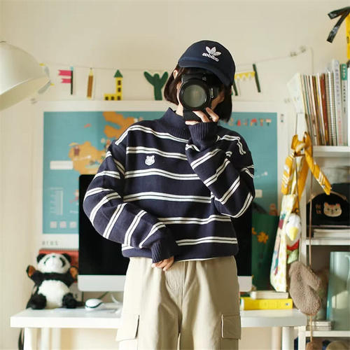 像是这种条纹的款式就是比较适合小伙伴们平时用来搭配校服,尤其是校服是深色的小伙伴们,效果肯定是比平时选择的那些款式棒,尤其是这件衣服上面的卡通图案,和校服放到一起之后真的是显得“超萌”!