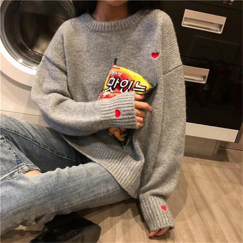 这件灰色的就是怎么搭配校服都很帅气啦,不管是深色还是浅色的校服应该都可以有很棒的效果,这种款式非常的简单,但是袖口位置的小红心让整件毛衣看起来不会单调,所以这就算是衣服上的“小心机”了。来源:高品质指南
