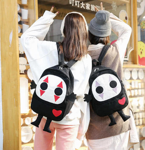 可爱的无脸男双肩包,记得刚刚认识这个角色以为是个坏人,没想到居然那么温柔,所以大家都非常喜爱啦~简约又简单的小书包,背着去上学一定会得到同学们羡慕的目光。