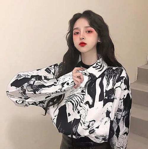 第一件黑白泼墨式的衬衫,黑与白的搭配向来都是最经典的,穿在身上,看起来酷感十足!穿在校服里面还能露出衬衫的花领子。