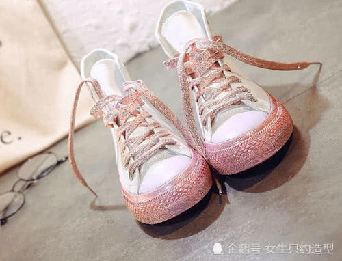 最近很多闪亮亮的鞋子成为大家的关注点,平庸的校服必须有一双大佬级别的鞋子来做搭配,粉色款的鞋底和鞋带都是完美的少女心展现,超级梦幻。