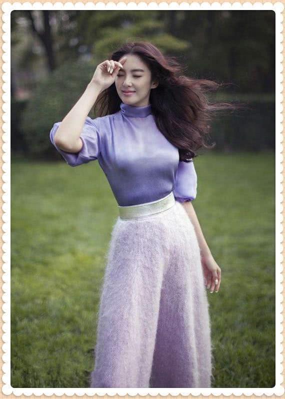 一件紫色上衣,衣袖部分是五分袖加泡泡袖的设计,下半身搭配一条毛茸茸的阔腿裤,这样看起来也是美美的,而且非常凸显她的气质。
