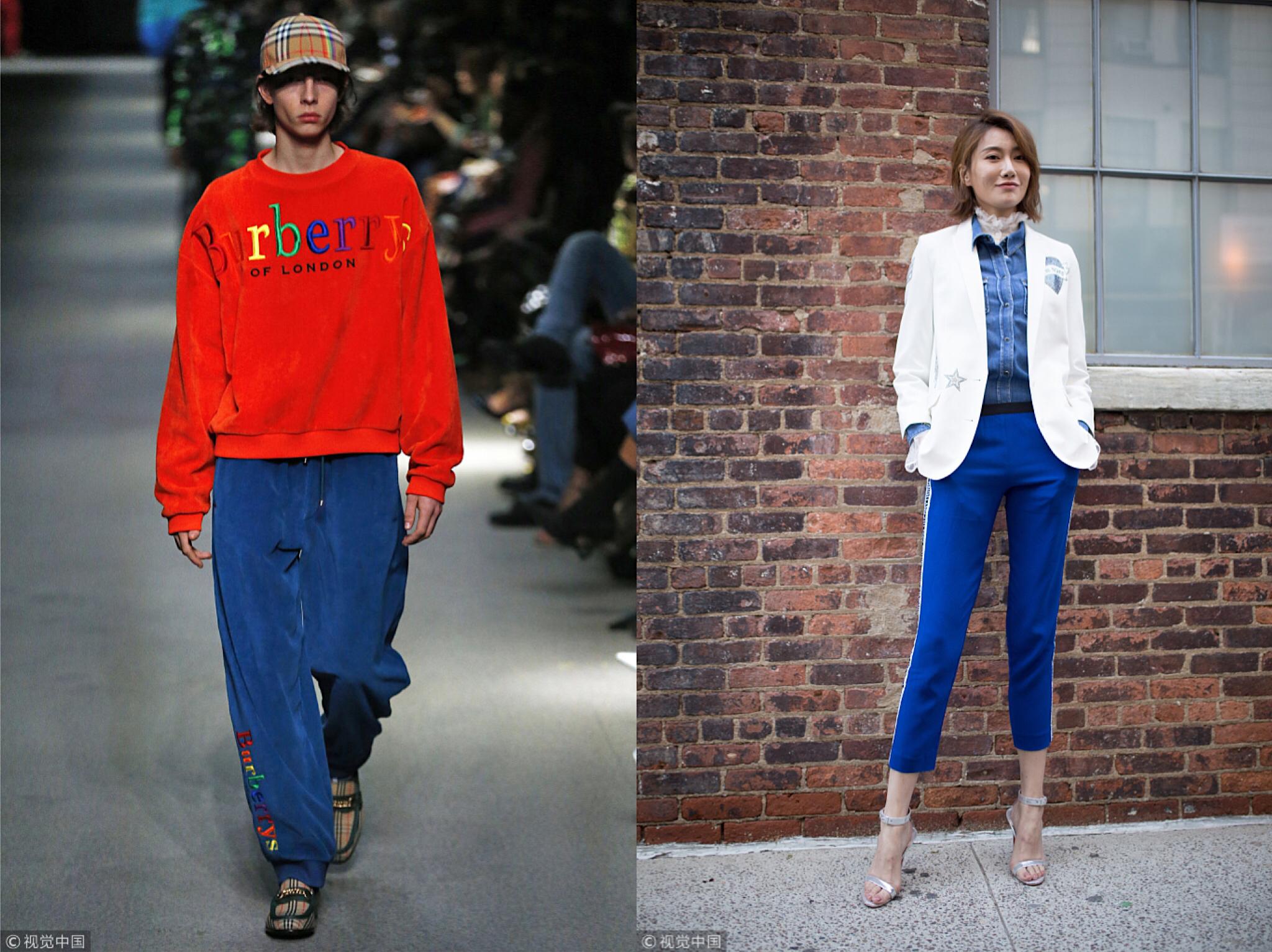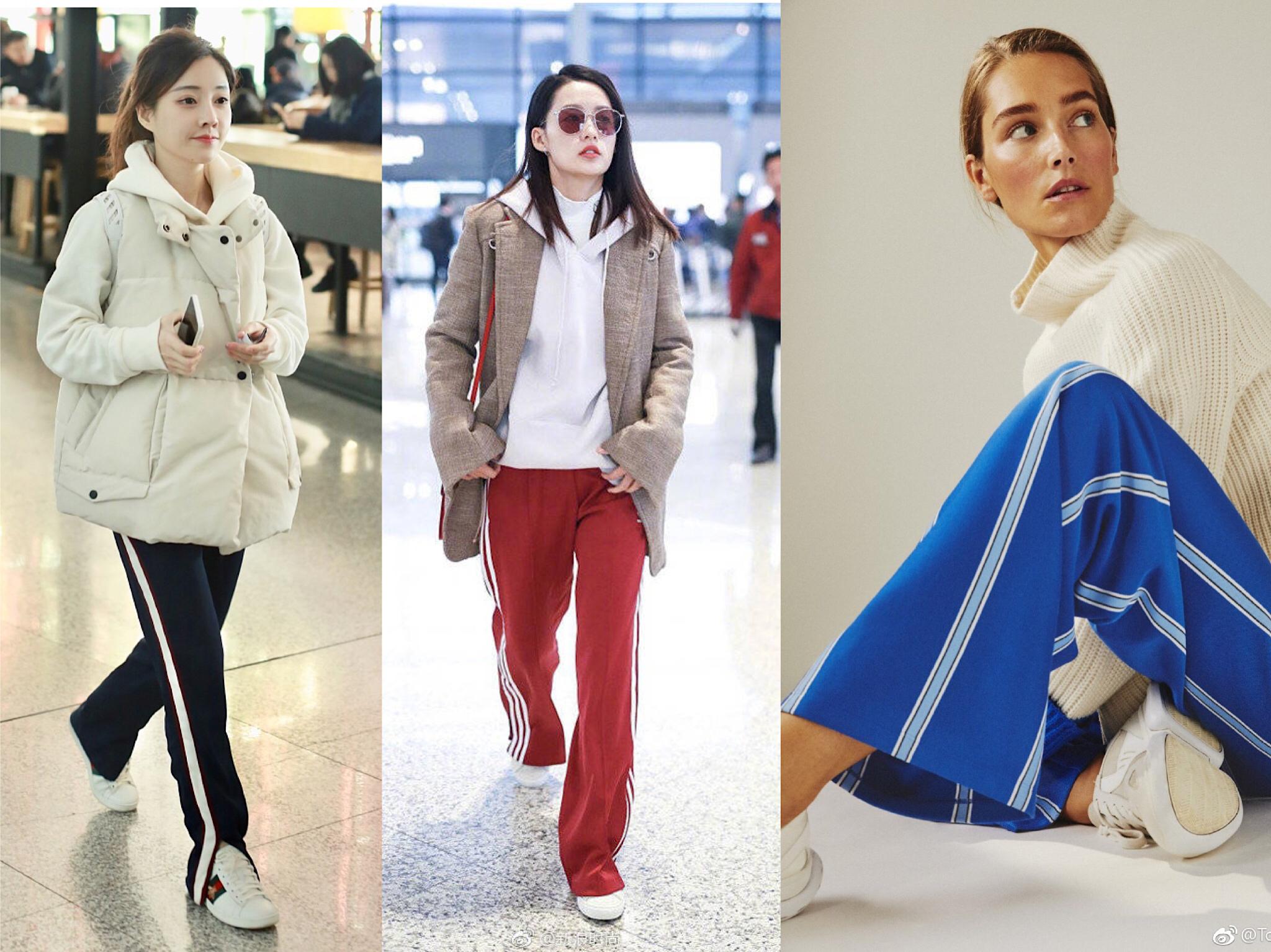 图片来源/新浪时尚官方微博截图 按颜色来说,黑色最保险不出错,加上侧面的竖条纹也最显瘦,红色和蓝色的运动裤是我们最熟悉不过的,增加了改良版的时尚元素,却依然有种让人难忘的“怀旧风”。