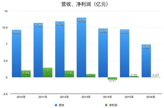 股权控制关系图 希努尔创始于1992年,2010年在深交所上市,作为中国男装定制的第一品牌,其拥有国内规模最大的男士正装生产基地。并一直致力于西装、衬衫及其他服饰类产品的设计、生产和销售。目前已建立起以自制生产为主、委托加工生产为辅,以直营店和特许加盟店为主、团体订购、外贸出口和网上直销为补充的生产销售模式。 但随着国内服装行业持续的低迷,加之竞争加剧,希努尔营收自2014年起,出现了连续3年的下滑态势。其中,2014年也是希努尔自上市以来出现的首次亏损。营收从2014年的10.29亿元下滑到了2016年的6.96亿元,净利润更是从2011年的2亿下滑到了2016年的746.86万元,足足蒸发掉了1.9个亿。
