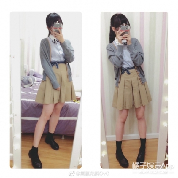 当然衣服也要分人穿,你看像微博上这个叫@氢氧花梨OvO的妹子穿起来就很好看