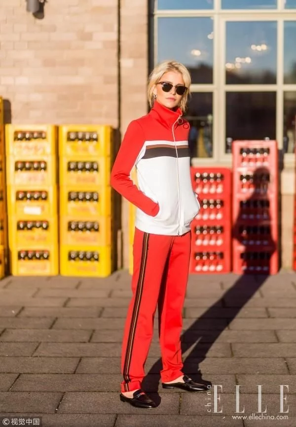 一双“骚气”的红色尖头袜靴帅爆街头,和运动上衣的颜色也巧妙呼应。