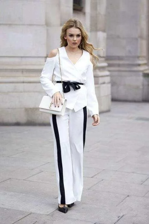 不同的风格有着不同的搭配法则,同样是校服裤,上衣搭配露肩的外套,整体风格更加性感迷人。