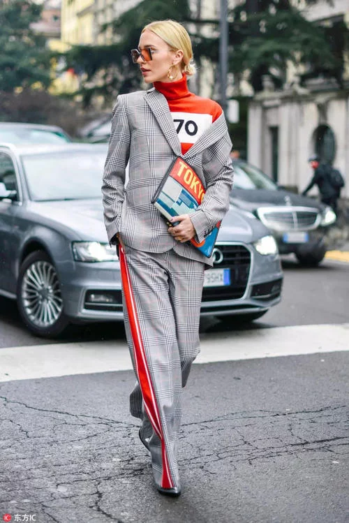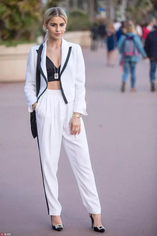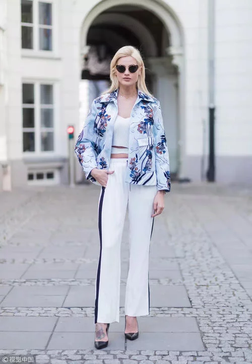 潮人这身造型与Caro Daur的十分相似,西装造型与运动裤元素完美结合,硬朗且休闲的造型想必会得到OL们的追捧!