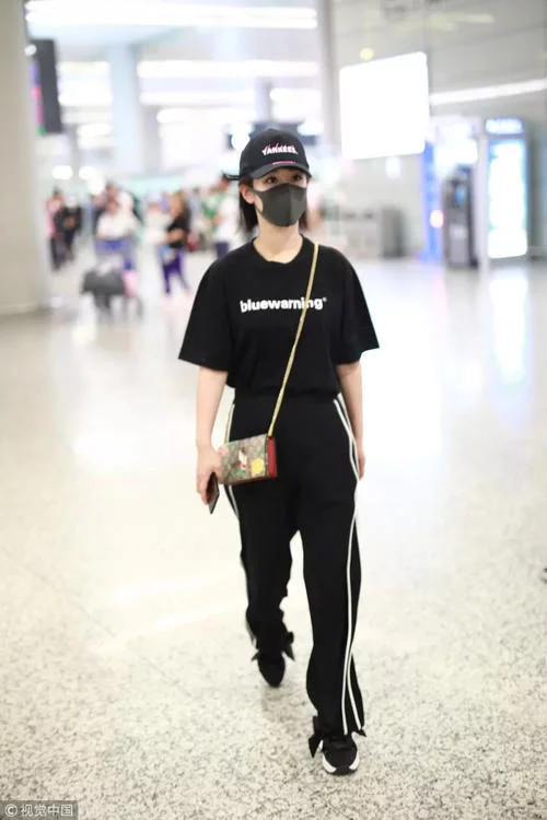 关键词:宽条纹 校服裤上的宽条纹是十分醒目的,宽宽的条纹不仅带着时尚感也带着一点街头感。 戚薇真的是这种宽条纹运动裤的忠实粉丝,连续两身造型都选择了宽条纹运动裤,不难发现她的搭配秘诀便是,条纹的颜色与帽子及衣服颜色高度统一,即使不统一也能在衣服上找到条纹的颜色。