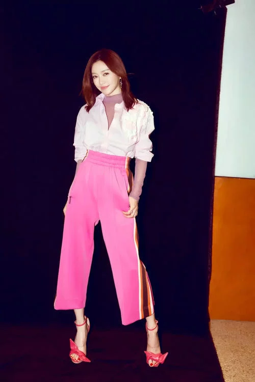 乔欣 关键词:阔腿 校服裤太土?那是因为还不够宽!将校服裤宽度放大至阔腿裤般宽窄,绝对时尚又拉风! 秦岚玩起时尚也是丝毫不马虎,粉色衬衣下搭桃红色九分阔腿裤运动裤,潇洒帅气的造型中又富含少女般娇媚,wuli皇后娘娘简直太美了!