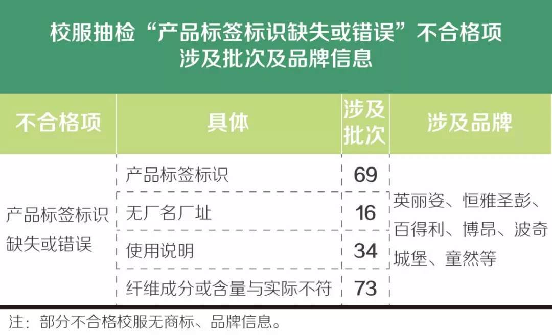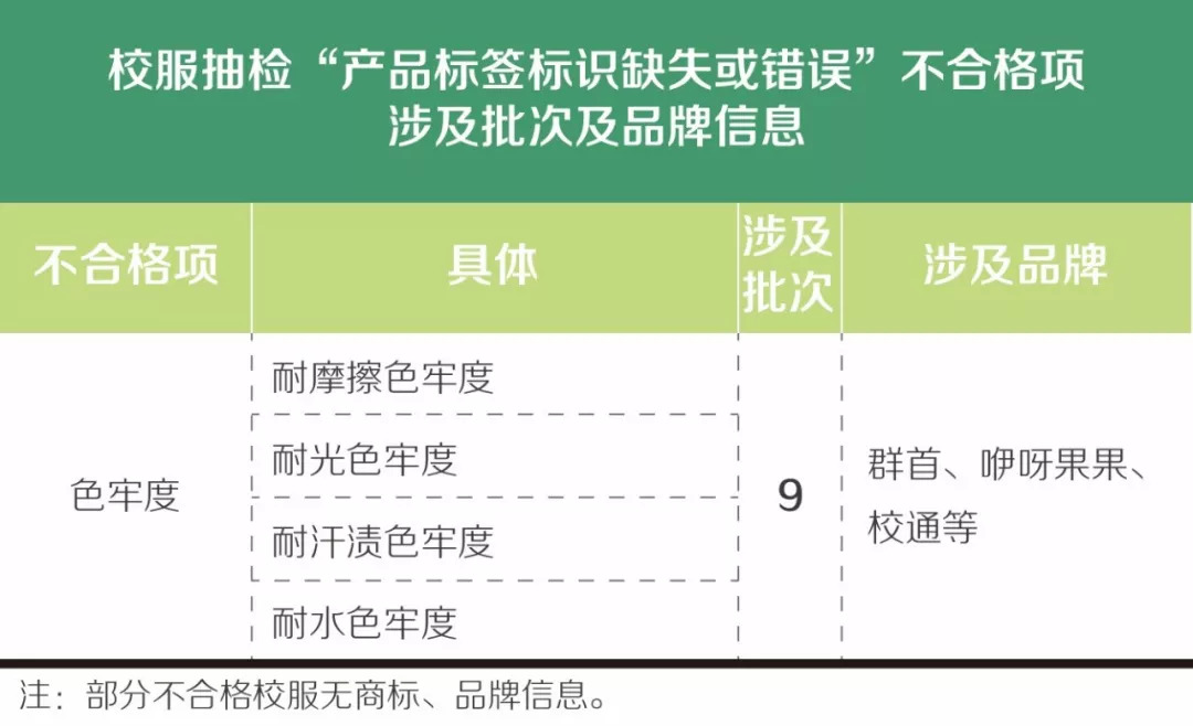 这些校服如穿到孩子身上,由于人体的皮肤呈弱酸性,织物的酸碱值过高,就可能在接触摩擦中,引起皮肤瘙痒、发红等过敏情况,甚至影响人体的汗腺和神经系统。 此外,也有一批次校服检出较大的异味,可能会影响呼吸系统,对人身健康造成危害。 质量问题:色牢度欠佳、“缩水”变形严重 校服抽检的不合格项中,标签标识错误或缺失仍然是织物类产品抽检不合格的主要原因。其中包括产品标签不规范、无厂名厂址、使用说明错误或缺失、纤维成分或含量与实际不符等。 而纤维成分或含量虚标,在2016-2018年抽检校服的不合格项中居首,共涉及73批次产品。