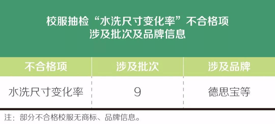 校服的色牢度不达标,在日常穿着、摩擦中,极容易掉色,其织料中的染料分子和重金属离子可通过汗水及与皮肤的接触中,转移到人体皮肤上,从而危害青少年儿童的身体健康。 除色牢度外,校服在水洗后的尺寸变化率也是质量不合格的重要原因。 织物在洗涤后可能发生一定的“缩水”或“变形”,根据其针织或机织等材质而略有不同。只要水洗后,长度、宽度仍一定标准范围内,就属合格。我国的中小学生校服标准亦对此有范围规定。 但在抽检中,由广州铂仕服装有限公司生产的多款德思宝(批次:2018/3、2018/4)中小学夏装校服出现了水洗尺寸变化率不达标的问题,可能会影响学生的日常穿着及美观。