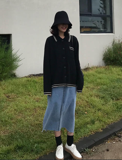 小工装外套,是不是也有自己的小特点呢?还有一种衬衣的版型,黑色的中长外套可以可以盖到屁股的位置,胯部比较大的女生也可以遮挡住了啊,不过校服外套的外面是不是也可以套上一件小外套呢?不过还是觉得校服还是很酷的啊。